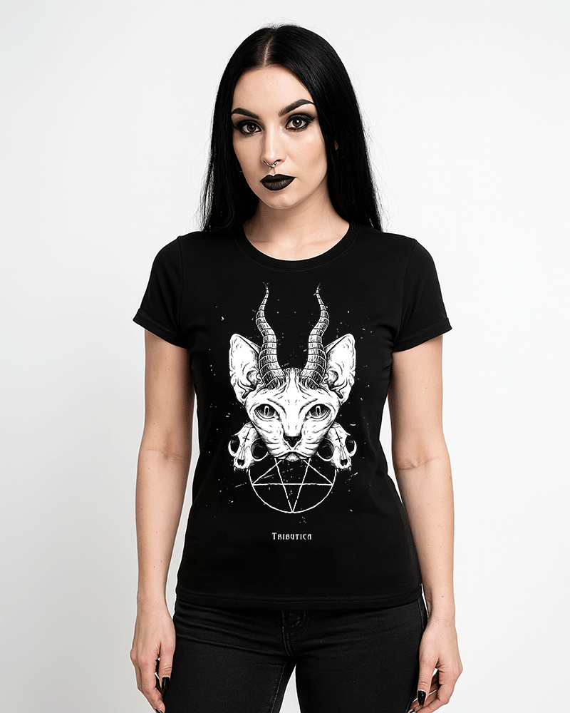 Das Evil Cat Girlie Shirt von Tributica ist die perfekte Verbindung aus femininer Passform und rebellischer Ästhetik.