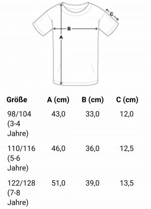 • Erhältlich in den Größen 98/104 , 110/116 und 122/128